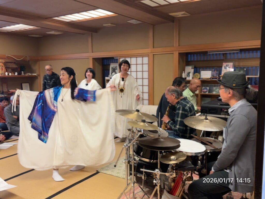 カタカムナウタヒをジャズインプロビゼーションに乗せ、会場の皆さまとウタヒいたしました。